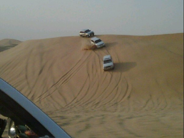 Reinforced land cruisers sliding down desert dunes, sometimes sideways. Excellent adrenaline rush, if you like that kind of thing. 🙂